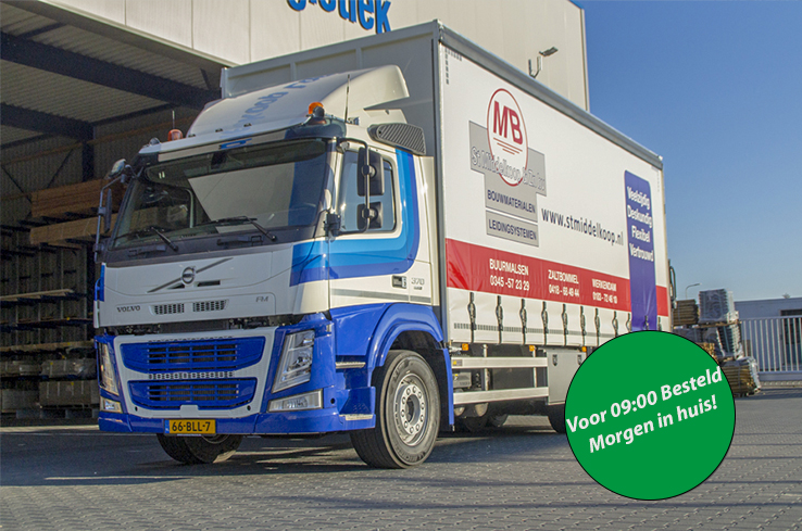 Middelkoop heeft een sterke bezorgservice in het gebied waarin de drie vestigingen zijn gelegen. In een straal van circa 30 kilometer rondom de winkels brengen wij materialen snel en supervoordelig op de gewenste locatie. Buiten de regio leveren we ook snel, maar komen er bij volumeproducten mogelijk vrachtkosten bij. Dit geldt voor een bestelling onder een bedrag van € 750,- excl. btw. Lees verderop meer!