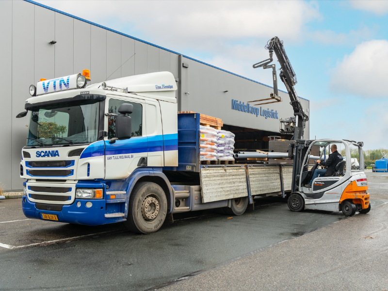 Middelkoop Logistiek zorgt ervoor dat je producten snel en compleet worden geleverd. Zo kun je direct aan de slag met je klus of project. Met een eigen transportvloot zorgen wij ervoor dat je verzekerd bent van snelle levering. Woon je wat verder bij ons vandaag? Geen probleem! Kleine pakketjes worden meestal via externe vervoerders thuisbezorgd. Grotere bouwmaterialen besteld? Grote kans dat Middelkoop Logistiek binnen mum van tijd voor de deur staat.